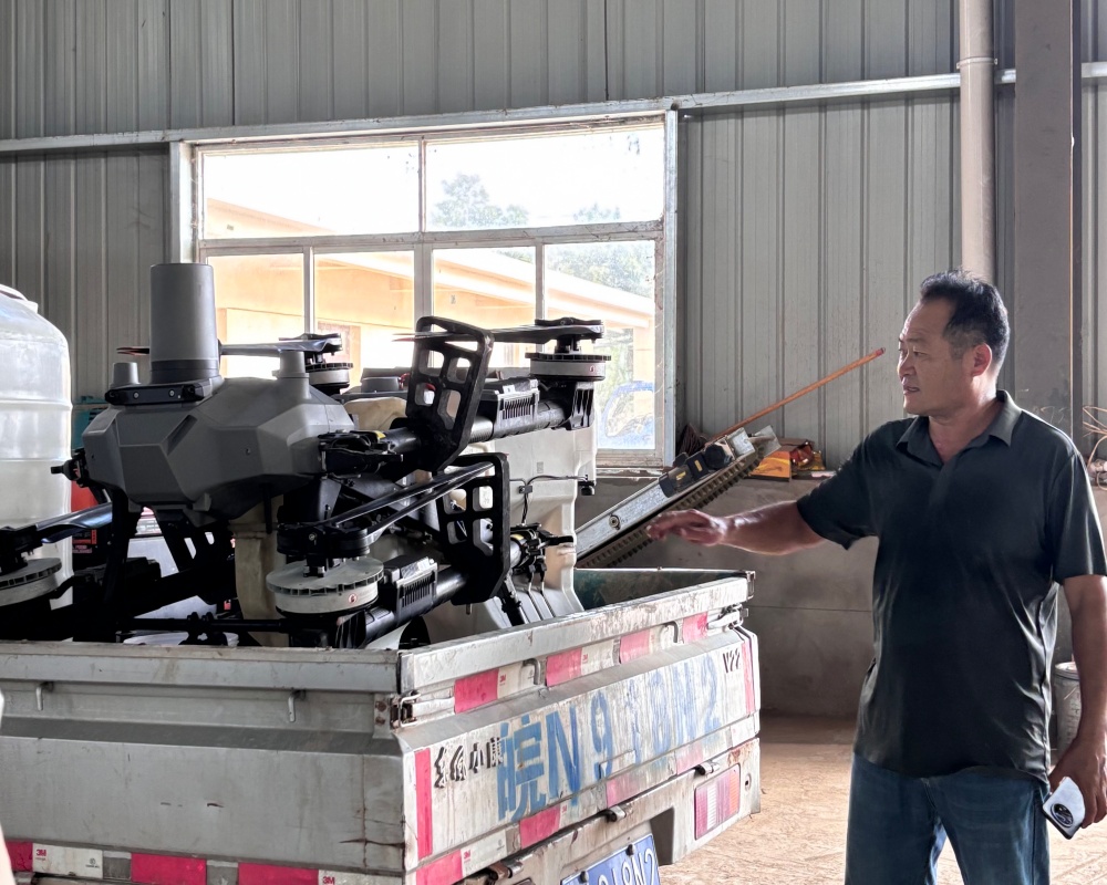 圖為“皖香潤(rùn)”大米生產(chǎn)企業(yè)負(fù)責(zé)人介紹工業(yè)無(wú)人機(jī) 彭佳蕾攝