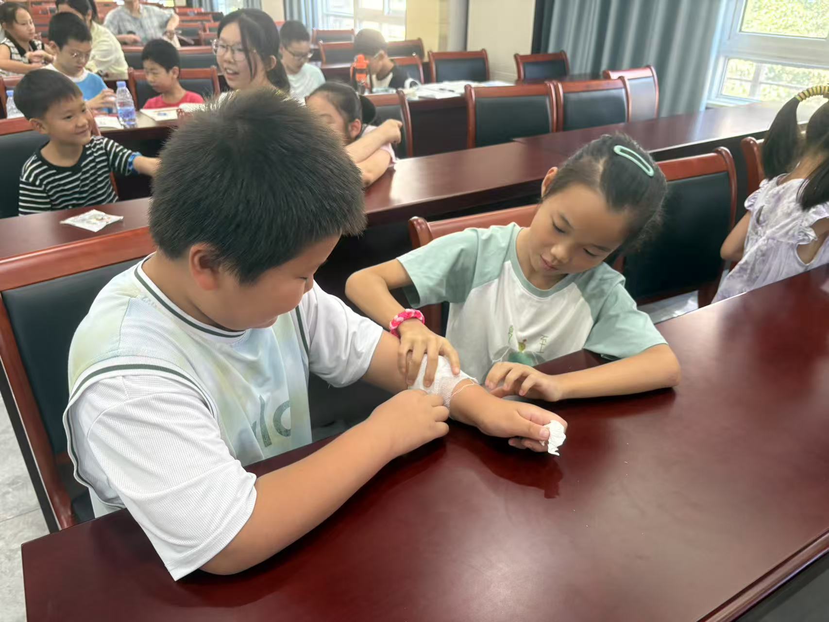 為進一步呵護孩子們的身心健康,學會必備急救、自護技能,志愿服務團成員將CPR急救、創(chuàng)傷包扎、氣道異物梗阻處理等常見危機應對轉化為生動的課堂實踐。結合外來務工家庭實際情況,志愿者開展了心理舒壓和抗挫力提升主題的小課堂,也重點講解了觸電、燙傷、中暑等常見意外的處置辦法。志愿者生動的演示和現(xiàn)場模擬,讓孩子們真切地感受到學習急救知識的重要性。在特設的“安全知識大闖關”環(huán)節(jié),孩子們通過游戲得分兌換急救包小獎品,在歡樂的游戲實踐中獲取新的生活知識,獲得真正的“身心”自護新體驗。