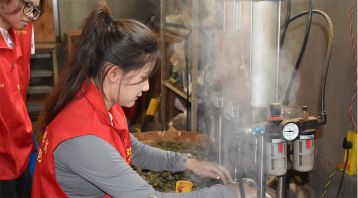 在者竜鄉(xiāng),不僅有蓬勃發(fā)展的產(chǎn)業(yè),更有深厚的文化底蘊。為促進文化傳承與產(chǎn)業(yè)振興深度融合,實踐團成員們開啟了一場“文化尋寶之旅”。他們赴峨毛村茶園及茶廠研學,沉浸式體驗制茶工藝,從采摘鮮葉到揉捻、發(fā)酵,再到最后的烘干、包裝,每一個環(huán)節(jié)都讓他們驚嘆不已。隨后,他們又探訪了市級非遺“木榨核桃油”工坊,親眼目睹傳統(tǒng)技藝的匠心傳承,感受古老工藝的獨特魅力。在研學過程中,他們還積極與傳承人交流,探討如何將傳統(tǒng)技藝與現(xiàn)代產(chǎn)業(yè)相結(jié)合,讓非遺文化在新時代煥發(fā)出新的生機與活力。研學結(jié)束后,實踐團分赴者竜村、腰村開展深度產(chǎn)業(yè)考察,并與者竜村支書共商林下經(jīng)濟,探討電商助力林下產(chǎn)品銷售、林下經(jīng)濟產(chǎn)業(yè)鏈優(yōu)化等議題,進一步深化政校企合作,為者竜鄉(xiāng)的鄉(xiāng)村產(chǎn)業(yè)振興注入新的活力。