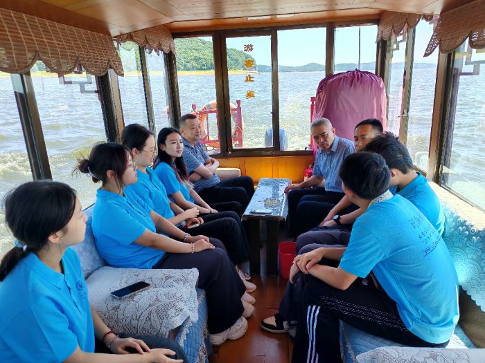 (團隊成員與相關(guān)領(lǐng)導(dǎo)在龍山風水庫游湖并就相關(guān)問題進行交談)