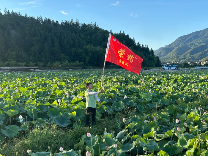 架起直播設(shè)備,將鏡頭對準(zhǔn)武夷山五夫鎮(zhèn)萬畝荷塘,讓粉白相間的蓮花、搖曳生姿的蓮葉與古樸村落躍入網(wǎng)友眼簾。以網(wǎng)絡(luò)流量為紐帶,打破地域限制,讓五夫鎮(zhèn)的蓮韻風(fēng)情跨越山海,吸引游客慕名而來,為鄉(xiāng)村文旅產(chǎn)業(yè)注入數(shù)字活力。在直播的同時(shí),志愿者們也開展了別開生面的蓮塘攝影活動。大家手持拍攝設(shè)備,穿梭于蓮葉田田之間,從不同角度捕捉蓮花綻放的優(yōu)雅姿態(tài)與蓮塘的詩意景致。有的聚焦沾滿露珠的嬌嫩花瓣,有的記錄微風(fēng)拂過的層層蓮葉,還有的將蓮塘與朱熹雕像巧妙融合。鏡頭之下,自然之美與人文氣息交相輝映,大家用影像留存下這場傳統(tǒng)文化的獨(dú)特印記,也為后續(xù)的文化傳播與活動宣傳積累了生動素材。