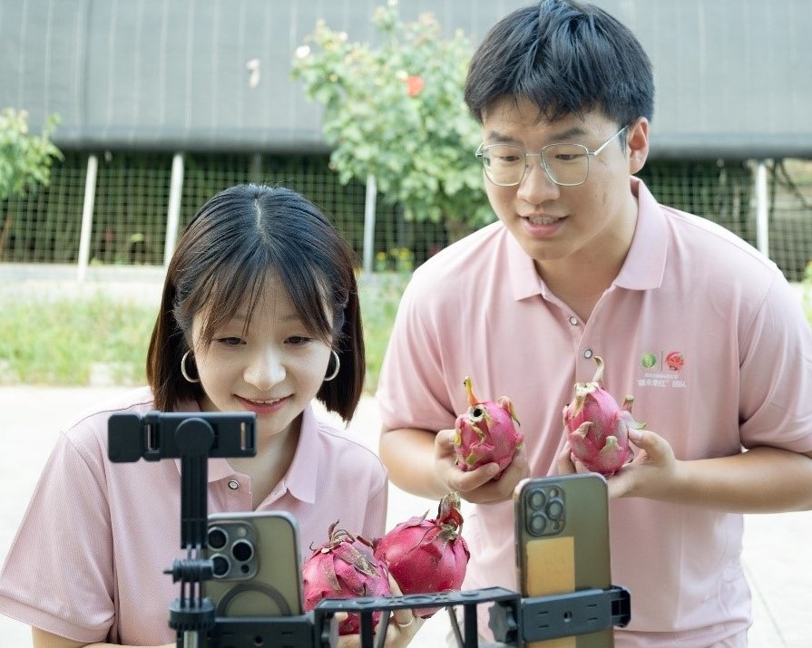 7月24日至30日,西北農(nóng)林科技大學(xué)園藝學(xué)院“棚程萬里”鄉(xiāng)村振興調(diào)研實踐團(tuán)的隊員們,將社會實踐的課堂搬進(jìn)了楊凌區(qū)青皮她園火龍果種植基地的直播間。實踐隊員化身“新農(nóng)人”主播,為基地的特色火龍果新品種傾情代言,用青春力量拓展數(shù)字銷路,以實際行動賦能鄉(xiāng)村產(chǎn)業(yè)振興。