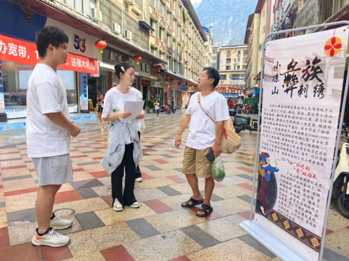 實踐活動最后,隊員們手持問卷深入縣城街頭巷尾,與當(dāng)?shù)乩C娘、商戶深入交流,梳理出彝繡傳承面臨的現(xiàn)實挑戰(zhàn)。團(tuán)隊針對不同年齡群體采用線上與線下相結(jié)合的調(diào)研方式,提出針對小涼山彝繡發(fā)展現(xiàn)狀的青年方案:在品牌建設(shè)上深挖自身文化內(nèi)涵,打造辨識度高的品牌;將傳統(tǒng)紋樣與現(xiàn)代設(shè)計融合,開發(fā)更多貼合市場需求的產(chǎn)品等方式助力小涼山彝繡的高效持續(xù)發(fā)展,后續(xù)實踐團(tuán)隊將結(jié)合專業(yè)所長,整理形成調(diào)研報告與建議,提出青年保護(hù)與傳承非遺文化的可行性方案,助力小涼山彝繡實現(xiàn)“傳統(tǒng)技藝保根脈、創(chuàng)新設(shè)計助力弘揚”的發(fā)展模式。