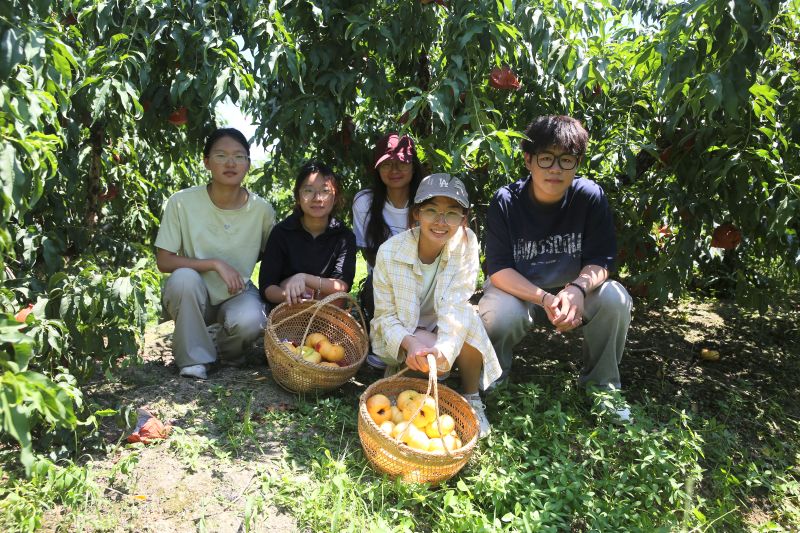 圖為實踐團采摘黃桃時的景象(施記者拍攝)