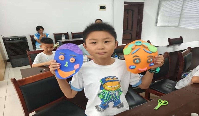 圖為孩子展示的黏土臉譜。陳蕊 供圖