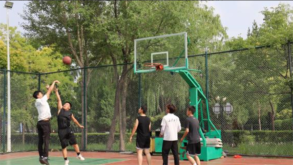 圖為實(shí)踐隊(duì)員在鄂爾多斯曙光社區(qū)進(jìn)行籃球交流賽 劉振鴻 攝