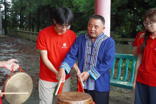 展示過(guò)后,宋老師主動(dòng)提出教授團(tuán)隊(duì)成員敲擊瓦鄉(xiāng)特色的皮鼓。他一邊持鼓槌示范,一邊耐心糾正團(tuán)隊(duì)成員的力度和節(jié)奏?粗蠹艺J(rèn)真學(xué)習(xí)的模樣,宋老師臉上露出了欣慰的笑容。他表示,年輕人愿意學(xué)這門(mén)手藝,就讓他看到了傳承的希望。