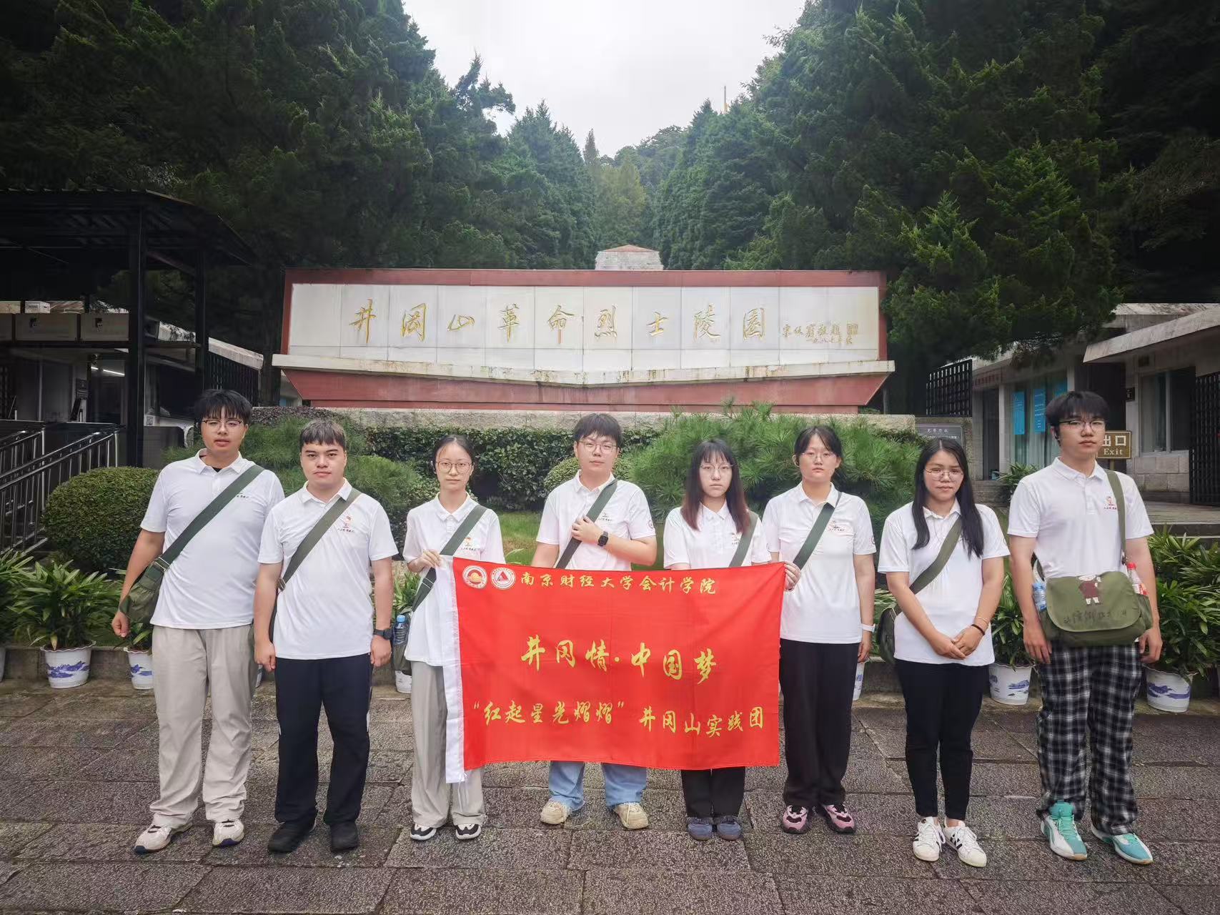 圖為團(tuán)隊(duì)成員在井岡山革命烈士陵園前合影