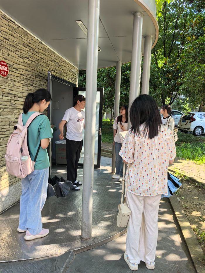 6月30日,團(tuán)隊(duì)深入新麓社區(qū),開展實(shí)地走訪調(diào)研。新麓社區(qū)是合肥市垃圾分類示范社區(qū),自2020年起推行垃圾分類工作,現(xiàn)已建成10余個(gè)定時(shí)定點(diǎn)投放站。隊(duì)員們分成三個(gè)小組,分別走訪了不同區(qū)域的垃圾分類投放點(diǎn),與勸導(dǎo)員、分揀員和社區(qū)居民進(jìn)行深入交流。