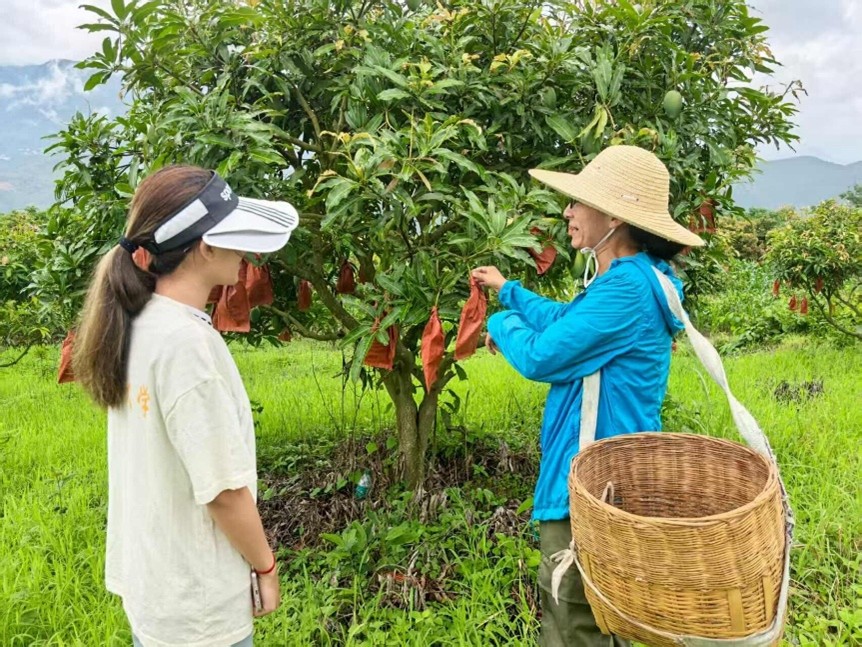 圖為團(tuán)隊(duì)成員幫忙采摘芒果。武炳坤/供圖