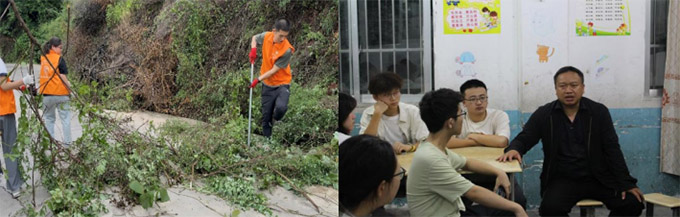 產(chǎn)業(yè)與生態(tài)共建,方有振興長效。7月13日下午,暴雨突襲,斷枝堵塞村道。實(shí)踐隊(duì)聞“汛”而動,聯(lián)合村干部冒雨清障4小時(shí)。駐村段書記肩扛碗口粗樹干,隊(duì)員黃川玲手被劃傷仍堅(jiān)持作業(yè),最終眾人合力恢復(fù)1.5公里道路暢通。當(dāng)晚,實(shí)踐隊(duì)更與華中科技大學(xué)支教隊(duì)聯(lián)合召開鄉(xiāng)村振興交流會,共商農(nóng)產(chǎn)品推廣與教育幫扶協(xié)作機(jī)制。