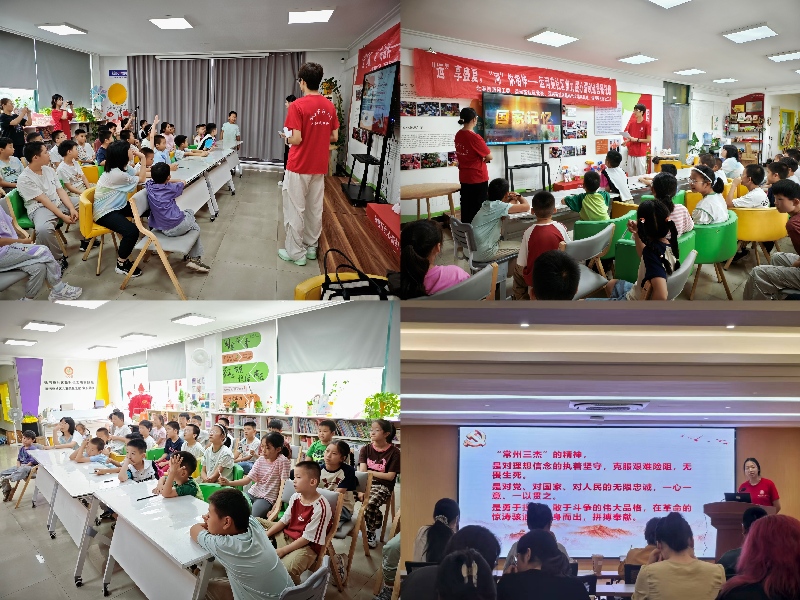線下,隊(duì)員們走進(jìn)社區(qū)和中小學(xué),開展“紅色故事會(huì)”活動(dòng)。8月11日運(yùn)河花苑社區(qū)第九屆心蕾創(chuàng)造營暑托班上,隊(duì)員喬婧和晏睿涵結(jié)合團(tuán)隊(duì)研學(xué)成果講述三杰故事,讓同學(xué)們身臨其境感受革命先輩的愛國情懷。許多同學(xué)踴躍舉手,積極表達(dá)看法,課堂氛圍十分熱烈;顒(dòng)結(jié)束后,一位同學(xué)說:“原來革命先烈離我們這么近,他們的故事讓我明白,青春應(yīng)該有擔(dān)當(dāng)。”