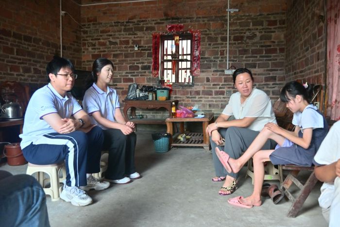 圖6實踐團成員和村委工作人員與困難家庭交流(丘文攝)
