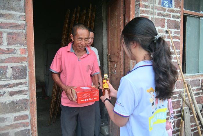 7月21日,在前期走訪脫貧監(jiān)測戶的基礎(chǔ)上,心連壯瑤實踐團探訪了村中“五保戶”與困難家庭,送上暖心關(guān)懷和生活物資。