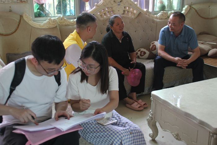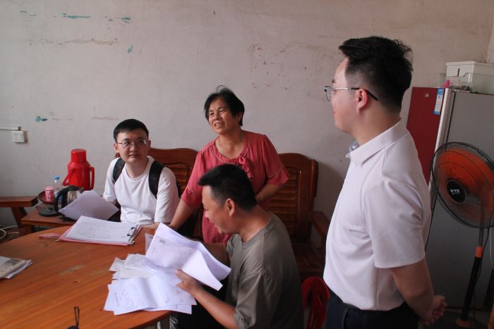 在村黨支部書記鄧秀清、指導老師陳世南和駐村第一書記李濤的推動下,心連壯瑤實踐團成員與鎮(zhèn)村干部成立了聯(lián)合走訪小組。