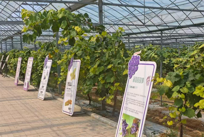 近日,段園葡萄種植基地內(nèi)新增“葡萄的故事”系列科普展板,在溫室大棚區(qū)域有序陳列。展板以圖文形式講述葡萄品種、種植知識(shí)等內(nèi)容,既為游客增添游覽趣味,也助力段園葡萄產(chǎn)業(yè)文化傳播,成為展示當(dāng)?shù)靥厣r(nóng)業(yè)的生動(dòng)窗口,推動(dòng)農(nóng)旅融合發(fā)展。