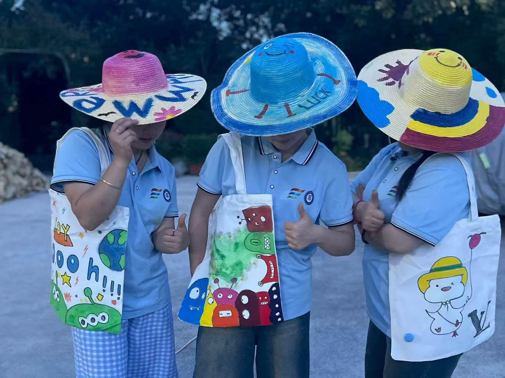 (圖注:三位身著統(tǒng)一服裝的實踐隊員,頭戴色彩繽紛、創(chuàng)意繪制的草帽,青春洋溢 隊員供圖)