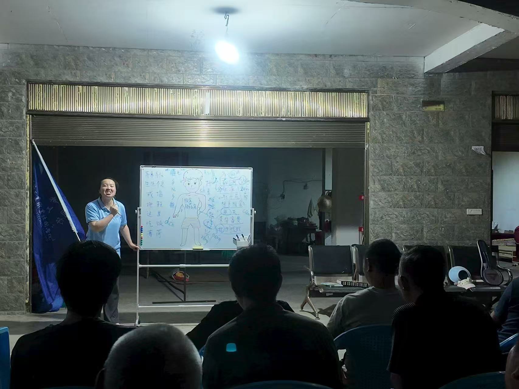 實踐隊開展線下教學。為提升村民參與度,團隊手工制作草帽、手提袋,準備成語故事圖畫書、杯子等禮物,獎勵積極參與者。線下活動開展,隊員結(jié)合“新鮮”“暈車”等生活詞匯、“膝蓋”“脖子”等身體部位及地方地名,在白板上教學正確讀音,讓課堂貼近生活。盡管部分村民發(fā)言帶口音,仍獲一致贊揚。課后,隊員邀請村民參與集體跳大繩、抖音直播唱歌跳舞、廣播體操等娛樂活動,現(xiàn)場氛圍熱烈。