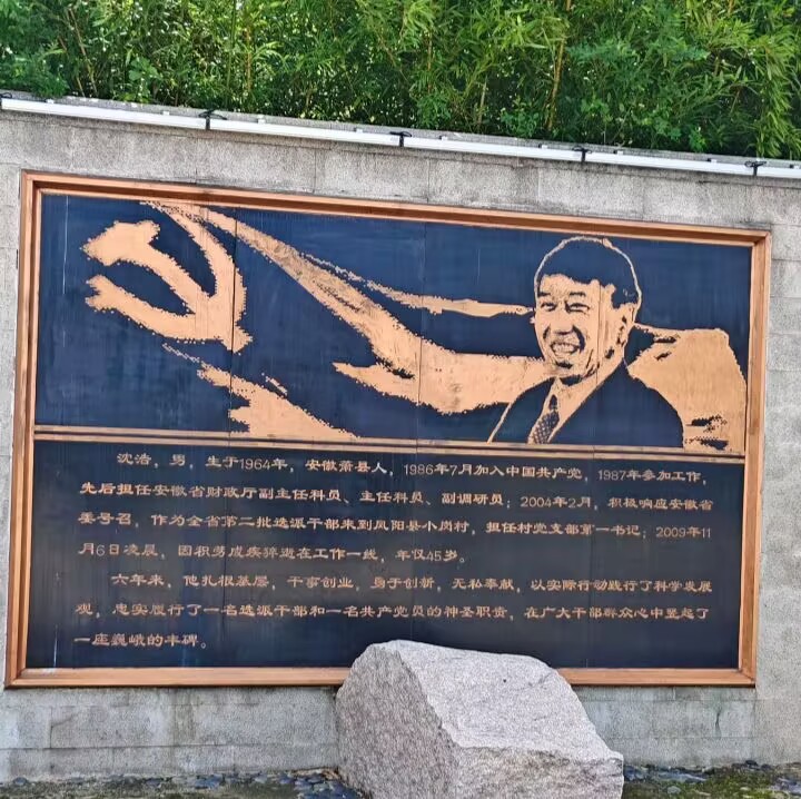 實踐次日,團隊轉(zhuǎn)赴沈浩同志先進事跡陳列館,深入了解沈浩同 志的崇高精神與感人事跡。步入館內(nèi),映入眼簾的是精心設計的 布局與詳實的展陳,這全方位、立體化地展現(xiàn)了沈浩同志作為小 崗村黨委第一書記的赤子情懷與卓越貢獻。一幅幅圖片、一段段 影像、一件件實物,無一不深情講述著他“兩任村官瀝血嘔心帶 領(lǐng)一方求發(fā)展,六載離家鞠躬盡瘁引導萬民奔小康”的動人篇章。 隨后,實踐團成員實地探訪了沈浩同志在小崗村的舊居與辦公 室。所謂辦公室,無非是一個低矮的房子,里面只是極其簡單的 辦公桌椅,這與他在村民心中的形象形成鮮明對比。“沈浩精神” 所蘊含的忠誠、擔當與奉獻,此時也化為青年學子們砥礪前行的強大動力。