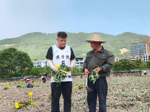 洋中村是重要的甘薯種植基地,實踐隊員們深知甘薯品質(zhì)對于當(dāng)?shù)匕l(fā)展的重要性。一到洋中村,實踐隊員們便積極開展走訪調(diào)查,了解到當(dāng)?shù)卮迕襁M行甘薯種植時深受病蟲害與植物產(chǎn)量低等困難。得知此消息,實踐隊當(dāng)即制定計劃,決定深入田間地頭,開展甘薯優(yōu)良種苗選育,用所學(xué)的知識為鄉(xiāng)村振興貢獻(xiàn)智慧與力量。