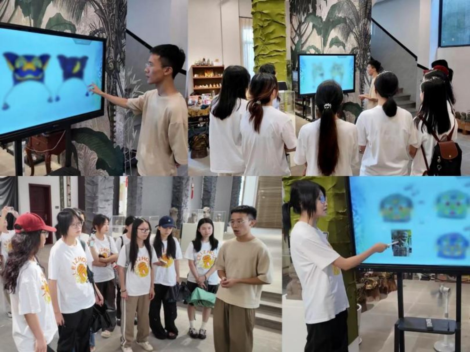 隊員們懷揣著對歷史的敬畏和對文化的熱愛,先后走進雷州市博物館、雷祖祠、三元塔、西湖公園等文化地標。在這些地方,她們發(fā)現(xiàn)大大小小的石狗遍布石橋頭、祠堂口、牌坊上,一尊尊形態(tài)各異的石狗仿佛在訴說著歲月的故事。穿梭于古跡之間,她們觸摸到千年非遺的溫度:既了解了石狗從圖騰崇拜逐步演變?yōu)槭刈o使者的傳奇歷程,也感受到石狗文化與當?shù)厣畹木o密聯(lián)系。