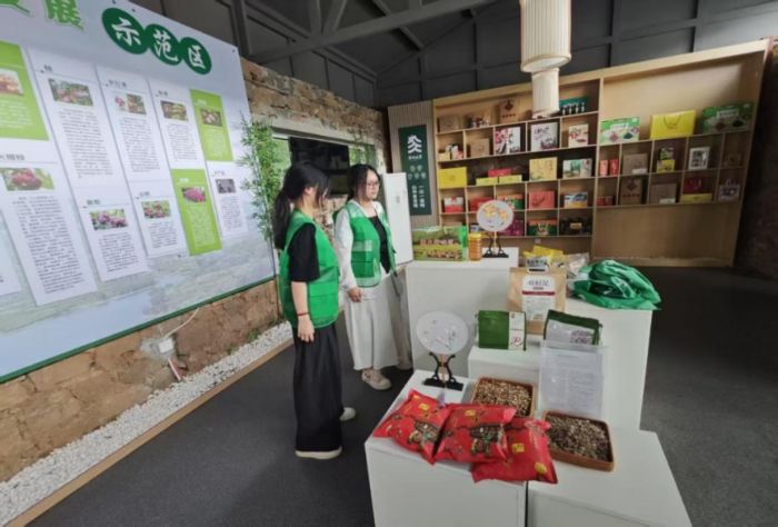 圖片為實(shí)踐團(tuán)隊(duì)員參觀藤花峪特色農(nóng)產(chǎn)品。孫文靜 供圖