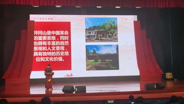 隨后,“紅土新芽,青耕力行”實(shí)踐團(tuán)進(jìn)行課題成果匯報(bào)。團(tuán)隊(duì)成員圍繞井岡山紅色文化傳承與發(fā)展這一主題,通過(guò)詳實(shí)的數(shù)據(jù)、生動(dòng)的案例和精彩的展示,匯報(bào)了在實(shí)踐期間的調(diào)研成果,展現(xiàn)了皖西學(xué)院學(xué)子扎實(shí)的專業(yè)素養(yǎng)和深入思考的能力。匯報(bào)內(nèi)容涵蓋井岡山紅色文化資源挖掘、紅色旅游發(fā)展現(xiàn)狀及問(wèn)題分析,提出了一系列具有創(chuàng)新性和可行性的發(fā)展建議,贏得了現(xiàn)場(chǎng)陣陣掌聲。