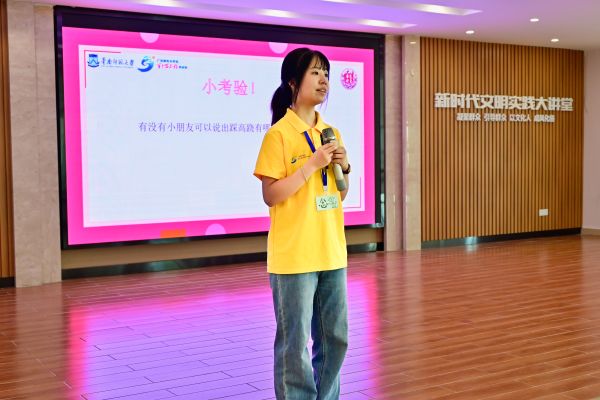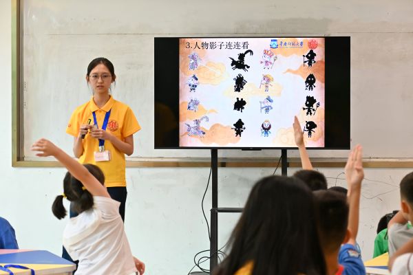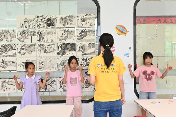 面對小朋友們“非遺是什么”的好奇詢問,實踐團成員精心組織了國家非遺科普課程,通過牛郎織女傳說、古琴藝術(shù)和龍舞表演等生動案例,帶領(lǐng)孩子們認識非遺。課堂上,孩子們積極互動、踴躍搶答,在實踐團成員寓教于樂的方式中領(lǐng)略非遺的魅力。