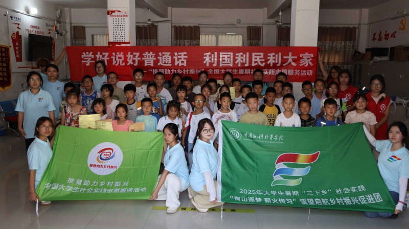 重慶外語外事學(xué)院8月26 日訊(通訊員 楊鑫)2025年7月13至7月22日,為積極響應(yīng)《教育強(qiáng)國建設(shè)規(guī)劃綱要(2024-2035年)》中“加強(qiáng)國家通用語言文字推廣”的號召和國家“語言文字事業(yè)服務(wù)鄉(xiāng)村振興戰(zhàn)略”部署,重慶外語外事學(xué)院“青山逐夢薪火傳習(xí)”溪望啟航鄉(xiāng)村振興促進(jìn)團(tuán)奔赴重慶市巫溪縣,依托三下鄉(xiāng)平臺開展推普助力鄉(xiāng)村振興活動。實(shí)踐團(tuán)聚焦上磺鎮(zhèn)與寧廠古鎮(zhèn)不同群體的需求,通過調(diào)研走訪、支教課堂、社區(qū)宣講等形式,以語言為橋賦能鄉(xiāng)村建設(shè),讓普通話走進(jìn)田間地頭、課堂社區(qū)。