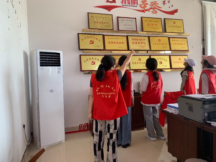 (圖為廣西民族師范學(xué)院云帆實踐隊在參觀石路村榮譽(yù),攝影:韋翠毓)