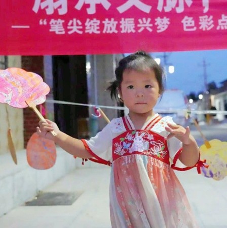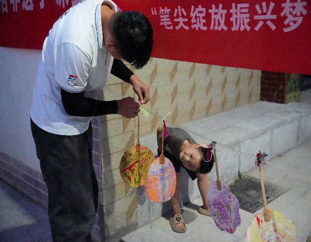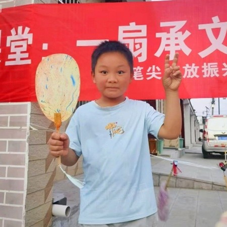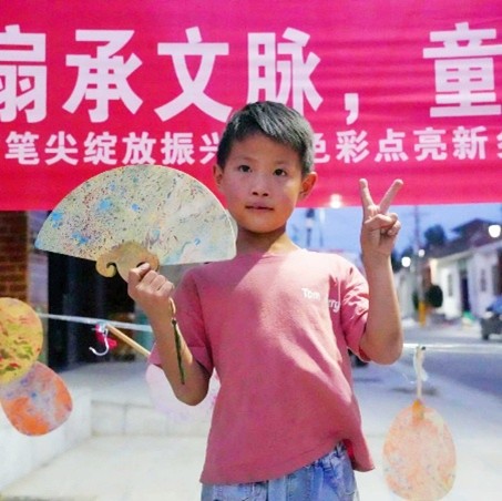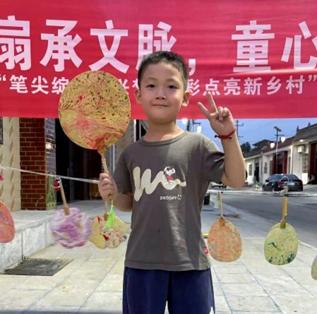 隨后,實踐團(tuán)成員與兒童一起將這些漆扇作品懸掛在繩上,瞬間,漆扇隨風(fēng)飄動,形成了一道獨(dú)特而亮麗的風(fēng)景線,過往的村民紛紛駐足觀看,對這些精美的漆扇作品贊不絕口。