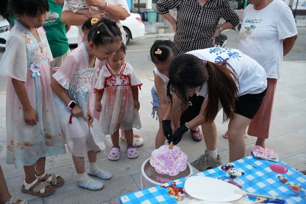 實踐期間,實踐團(tuán)成員針對周一村文化氛圍活力低下的現(xiàn)狀,精心策劃并成功舉辦了一場別開生面的漆扇制作活動。漆扇,這一承載著中國傳統(tǒng)文化的藝術(shù)品,成為了連接實踐團(tuán)與周一村村民與兒童的橋梁。在實踐團(tuán)成員們的耐心指導(dǎo)下,兒童不僅學(xué)習(xí)了漆扇制作的基本技巧,還充分發(fā)揮自己的創(chuàng)意與想象力,制作出了一扇扇獨(dú)一無二兼具傳統(tǒng)韻味和現(xiàn)代審美的漆扇作品。