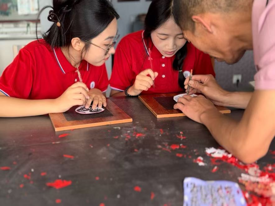 中國剪紙第一村:刀尖上的千年傳承。實踐團(tuán)隊首站來到“中國剪紙第一村”南張莊村。一進(jìn)村,濃郁的剪紙藝術(shù)氛圍便撲面而來。街邊店鋪陳列著琳瑯滿目的剪紙作品,單色、彩色、單彩復(fù)式、多層套色等各類剪紙爭奇斗艷,花鳥魚蟲、人物故事在薄紙上栩栩如生。非遺傳承人現(xiàn)場展示了“陰刻為主、陽刻為輔、彩色點染”的高超技藝,只見刻刀翻飛間,一幅精美的花鳥圖躍然紙上。