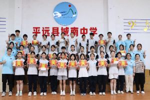 圖為突擊隊(duì)成員與平遠(yuǎn)縣城南中學(xué)學(xué)生們合影。吳婷婷攝