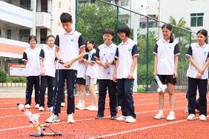 “水火箭”制作與發(fā)射環(huán)節(jié)通過分組協(xié)作完成設(shè)計(jì)、組裝和調(diào)試全過程,培養(yǎng)學(xué)生的創(chuàng)新思維和團(tuán)隊(duì)合作能力。學(xué)生們自主命名的“橙光號(hào)”、“普洱一號(hào)”水火箭騰空而起,拖著水汽曳出彩虹軌跡,引發(fā)了對“為什么飛得直?怎么飛更遠(yuǎn)?”的科學(xué)追問和思考。