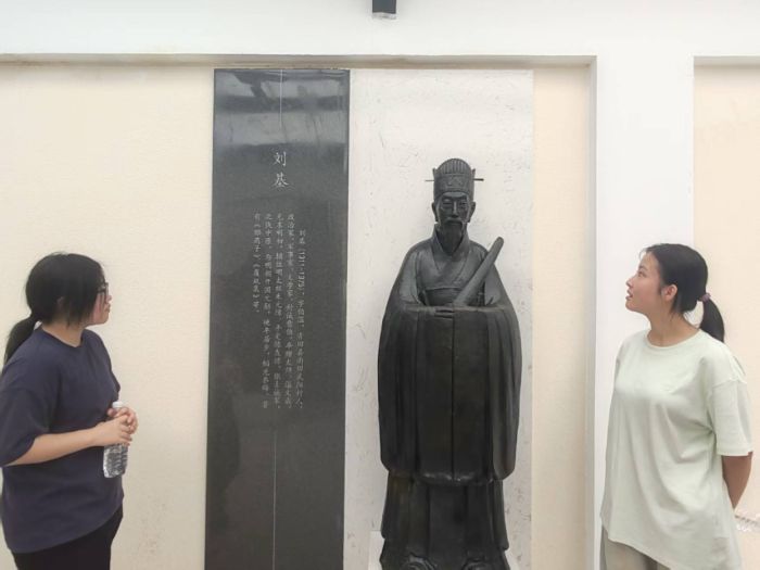 7月7日,實(shí)踐隊(duì)前往麗水市核心城區(qū),首站走進(jìn)麗水博物館。在“劉基文化專題展廳”,隊(duì)員們認(rèn)真參觀陳列的劉基詩文手稿復(fù)制品、相關(guān)歷史器物,并不時(shí)與展廳講解員交流。“這組‘劉基治浙’場景模型,還原了他當(dāng)年在浙江推行惠民政策的場景,比如興修水利、簡化賦稅。”老師王江平向隊(duì)員們介紹,“博物館希望通過實(shí)物與場景結(jié)合,讓觀眾更直觀理解伯溫精神。”隊(duì)員們用相機(jī)拍攝展品細(xì)節(jié),實(shí)踐隊(duì)隊(duì)員林茜茜還針對(duì)“劉基與麗水地域文化關(guān)聯(lián)”向王江平提問,詳細(xì)記錄講解內(nèi)容。下午,實(shí)踐隊(duì)來到麗水市劉祠堂背歷史文化街區(qū),這里曾是紀(jì)念劉基的重要場所,保留著多處與伯溫文化相關(guān)的遺存。隊(duì)員們探討伯溫文化活化路徑,林茜茜建議:“可將劉祠堂背的遺存故事做成文創(chuàng)書簽、短視頻,吸引年輕人了解;美術(shù)學(xué)院學(xué)生也可參與街區(qū)墻繪,展現(xiàn)伯溫傳說。”