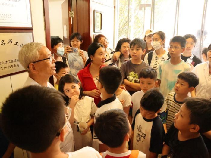 活動(dòng)的高潮,是江蘇省名中醫(yī)、江蘇省非物質(zhì)文化遺產(chǎn)朱氏針法繼承人、全國老中醫(yī)藥專家學(xué)術(shù)經(jīng)驗(yàn)指導(dǎo)老師——朱新太介紹朱氏針法。孩子們圍在他身旁,目光緊緊追隨著老先生。那一刻,“朱氏針法” 不再是一個(gè)抽象的名詞或非遺的頭銜,它化作了一種看得見、感受得到的神奇魅力,在老先生的介紹中,訴說著跨越時(shí)光的醫(yī)道匠心。這份源自實(shí)踐的震撼,深深印在了每一個(gè)小郎中的心里。