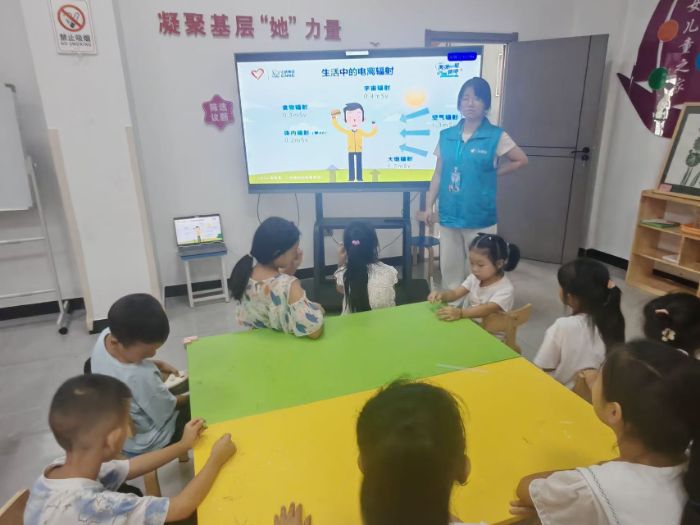 為了讓孩子們直觀理解華龍一號(hào)的安全特性,志愿者拿出了提前準(zhǔn)備好的道具——用兩個(gè)透明塑料盒模擬“雙層安全殼”,把紅色的小彈珠當(dāng)作“有害輻射”,演示時(shí),“輻射”被牢牢困在“安全殼”內(nèi),怎么也跑不出來。“這就是華龍一號(hào)的安全秘密哦,它能把危險(xiǎn)都擋在外面,安心地給我們發(fā)電呢!”志愿者的講解生動(dòng)又形象,孩子們都湊上前,好奇地盯著道具看。隨后播放的華龍一號(hào)機(jī)組內(nèi)部運(yùn)轉(zhuǎn)的動(dòng)畫短片,更是讓孩子們驚嘆連連,小嘴里不斷冒出“好神奇”“太厲害啦”的贊嘆。