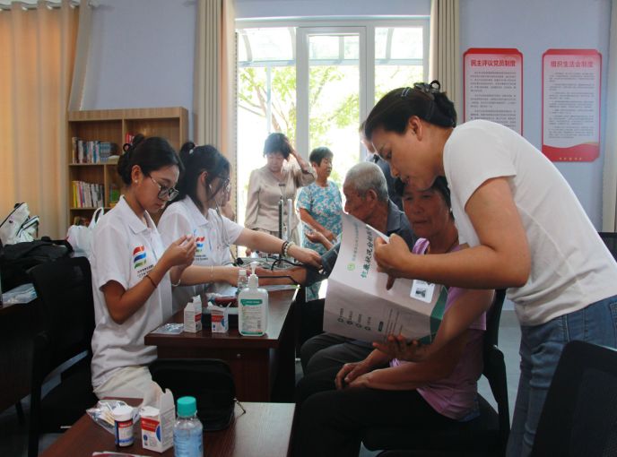志愿服務(wù)隊(duì)聯(lián)合山東第二醫(yī)科大學(xué)附屬醫(yī)院、東營(yíng)市人民醫(yī)院的多領(lǐng)域?qū)<,深入基層一線開展義診服務(wù),并針對(duì)常見疾病耐心問診,給出科學(xué)診療建議。服務(wù)隊(duì)充分發(fā)揮專業(yè)優(yōu)勢(shì),為居民提供量血壓、測(cè)血糖等基礎(chǔ)醫(yī)療服務(wù),對(duì)指標(biāo)異常村民給予健康指導(dǎo),叮囑定期監(jiān)測(cè)、及時(shí)就醫(yī)。此次義診活動(dòng),不僅讓村民在家門口就享受到了便捷、專業(yè)的醫(yī)療服務(wù),也進(jìn)一步提升了護(hù)理學(xué)院學(xué)子的社會(huì)實(shí)踐能力和團(tuán)隊(duì)協(xié)作精神,展現(xiàn)了青年學(xué)生的責(zé)任與擔(dān)當(dāng)。