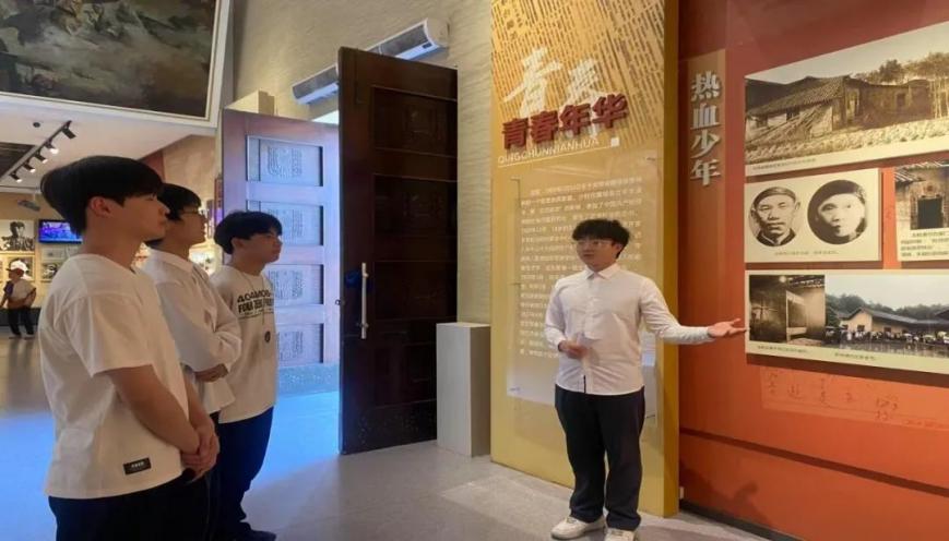7月9日,實踐團赴毛主席視察成安紀念館,開展社會實踐活動。實踐團成員站在毛主席視察成安紀念館的展示墻前,目光堅定,神情專注,向參觀者講述著那段珍貴歷史背后蘊含的偉大建黨精神。
