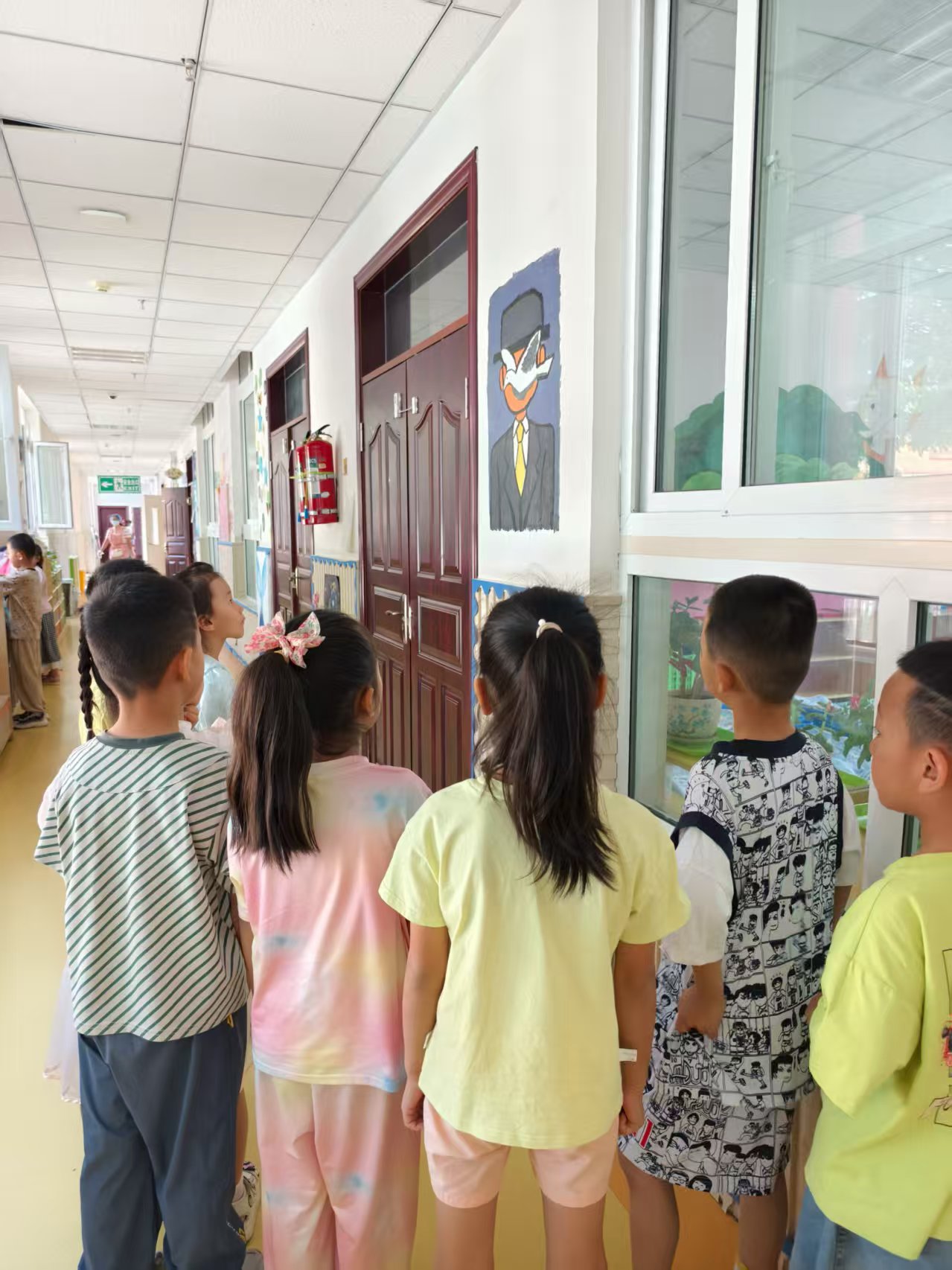 經(jīng)過(guò)兩天的辛勤努力,原本單調(diào)的墻面煥然一新,可愛的海綿寶寶、奇幻的卡通怪獸等一個(gè)個(gè)鮮活的卡通形象躍然墻上。孩子們看著這些色彩斑斕的墻繪,眼中滿是驚喜與喜愛。