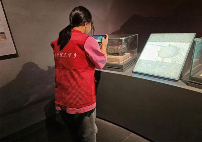 7月2日,在滁州博物館自然風(fēng)物陳列區(qū),實(shí)踐隊(duì)成員化身文化傳播使者,開(kāi)展志愿講解活動(dòng)。隊(duì)員們依托館內(nèi)文物與圖文資料等,向游客生動(dòng)闡述滁州自然與人文風(fēng)貌在不同歷史時(shí)期的發(fā)展變革。通過(guò)鮮活的講解,讓游客能夠更直觀地感受滁州的歷史底蘊(yùn)與地域魅力,也使小隊(duì)成員在實(shí)踐中深化了對(duì)滁州文化的了解,為后續(xù)文化傳播的工作積累了實(shí)踐經(jīng)驗(yàn)。通過(guò)實(shí)踐,團(tuán)隊(duì)成員們不僅鞏固了專(zhuān)業(yè)知識(shí),更掌握了文化傳播的實(shí)用技巧,為后續(xù)開(kāi)展社區(qū)文化宣講、制作新媒體科普作品奠定了堅(jiān)實(shí)基礎(chǔ)。
