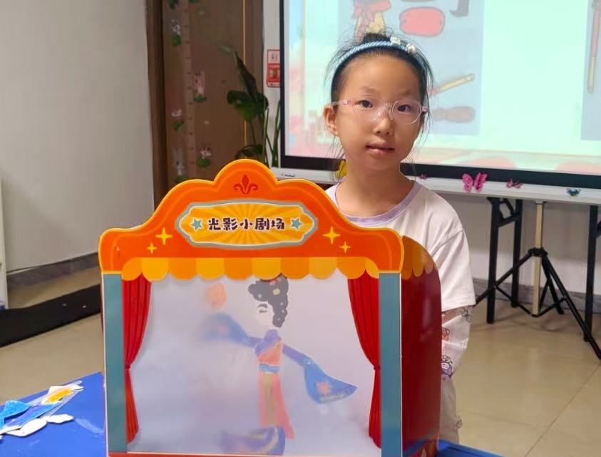 隨后,活動進入了實踐體驗環(huán)節(jié)。志愿者們根據(jù)當?shù)匚幕厣妥陨韺I(yè)特長,開設(shè)了多個非遺工坊課堂:“巧手生花”剪紙工坊里,紅紙在指尖折疊翻轉(zhuǎn),銀剪穿梭間,孩子們從最簡單的窗花學起,漸漸能剪出靈動的動物與繁復(fù)的花卉;一幅幅稚嫩卻充滿童趣的作品在他們手中誕生,喜悅?cè)绱宏柊阊_在每個孩子的臉上。隨后,“光影傳奇”皮影工坊點亮了想象的世界:志愿者們演示皮影操作之后,孩子們分組協(xié)作,為皮影涂抹絢爛色彩,親手操縱人物演繹《孫悟空三打白骨精》的經(jīng)典片段——白色幕布上光影搖曳,古老故事煥發(fā)出嶄新的活力。