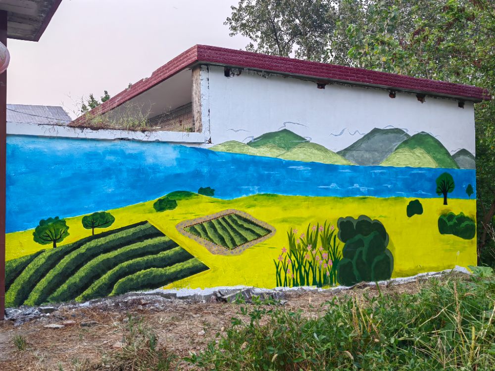 “綠映長(zhǎng)山,茶香十里”。長(zhǎng)山村,地處揚(yáng)州西陲,是一座擁山抱水、綠意盎然的丘陵村落,素有“十里長(zhǎng)山”之美譽(yù)。這里農(nóng)業(yè)形態(tài)多元,六百畝茶園更是承載著悠遠(yuǎn)茶香與人文積淀。在鄉(xiāng)村振興戰(zhàn)略全面推進(jìn)的背景下,人居環(huán)境美化與生態(tài)文化傳播成為重要課題。為進(jìn)一步美化鄉(xiāng)村環(huán)境、傳播“綠水青山就是金山銀山”的生態(tài)理念,8月25日,南京農(nóng)業(yè)大學(xué)資源與環(huán)境科學(xué)學(xué)院“丹青染鄉(xiāng)韻”實(shí)踐團(tuán)前往儀征市長(zhǎng)山村,開(kāi)展生態(tài)主題墻面彩繪工作,以畫(huà)筆為媒,繪生態(tài)于墻,用實(shí)際行動(dòng)參與鄉(xiāng)村建設(shè),書(shū)寫(xiě)“綠蘊(yùn)長(zhǎng)山,茶生富韻”的鄉(xiāng)村新篇章。