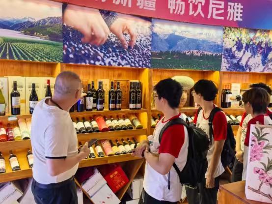 ▲圖為團隊在新疆農業(yè)博覽園調研葡萄酒產業(yè)