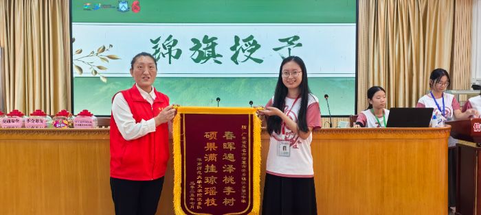 圖為流墨隊(duì)隊(duì)長孫樂向?qū)W校贈(zèng)予錦旗。通訊員 羅穎 供圖