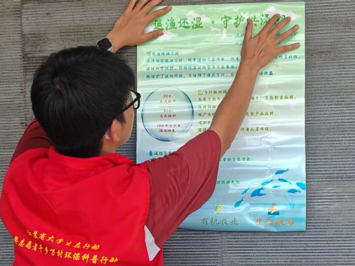 在本次“三下鄉(xiāng)”暑期社會(huì)實(shí)踐活動(dòng)中,團(tuán)隊(duì)成員們深入洪澤湖沿岸實(shí)施“退漁還濕”的相關(guān)鄉(xiāng)鎮(zhèn)與社區(qū),積極運(yùn)用自身專業(yè)技能,向大眾傳播生態(tài)環(huán)保的理念,宣傳濕地保護(hù)相關(guān)知識(shí)。我們深刻體會(huì)了退漁還濕與鄉(xiāng)村振興的落地實(shí)施現(xiàn)狀,并在實(shí)踐中真正看見了政策背后落地實(shí)施的真實(shí)狀況。在這段實(shí)踐里,我們不斷汲取經(jīng)驗(yàn),收獲成長(zhǎng)。我們將持續(xù)跟進(jìn)洪澤湖退漁還濕工程的推進(jìn),以及周邊產(chǎn)業(yè)的轉(zhuǎn)型升級(jí)態(tài)勢(shì)。作為一名資環(huán)學(xué)子,期待未來有機(jī)會(huì)能為濕地生態(tài)保護(hù)與社會(huì)經(jīng)濟(jì)發(fā)展奉獻(xiàn)青年力量。