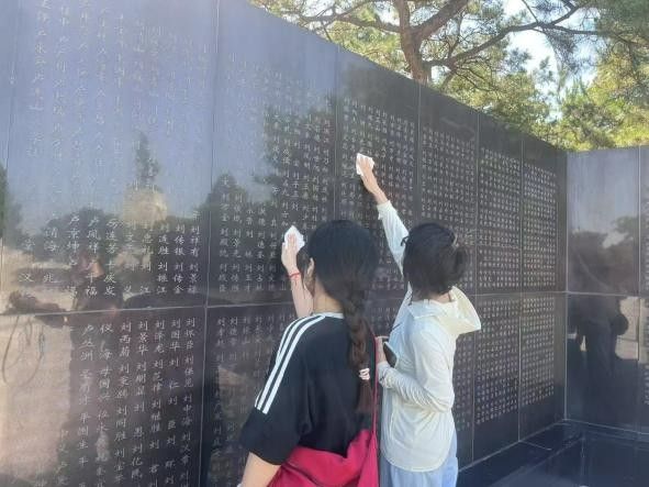 在英烈館“英名墻”前,團(tuán)隊成員自發(fā)拿起抹布,輕輕擦拭鐫刻著“劉”姓烈士姓名的墻面。劉杉杉同學(xué)輕聲念出一個個陌生卻莊嚴(yán)的名字,感慨地說:“他們可能是我的同鄉(xiāng)、同族,甚至可能是我的祖輩。”這一刻,歷史不再是課本上的文字,而是血脈相連的記憶,是激勵我們前行的精神火種。