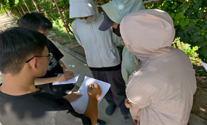 圖為團(tuán)隊成員與農(nóng)技人員進(jìn)行交流馬小萱供圖