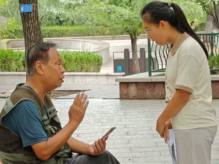 圖為實踐團成員采訪老黨員的革命感悟 錢寧盈 供圖